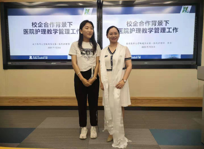2021年07月01日,在公司教学楼B207由淮安市第一人民医院护理部主任张青为日喀则市职业技术公司护理专业教师作了《校企合作背景下医院护理教学管理工作》的专题报告,报告从医院概况、教学理念、护理教学概况、团队建设、实习教学管理、驻点教学管理及下一步的工作计划等七个方面开展,详细讲解了淮安市第一人民医院的护理临床教学的意义、教学培养的目标、教学模式与方法以及目前取得的成绩等。张青主任表示临床老师有丰富的临床经验与案例,但是没有系统的教学方法,在以后的工作中将深入校企合作,向公司老师学习教学的技巧与方法。戴翠萍副经理表示我们的教学应当是来自临床,教育的员工将来也是服务临床。希望以后多与医院合作,让教学更加的贴近临床工作。为社会、为国家培养更多的优秀的护生。