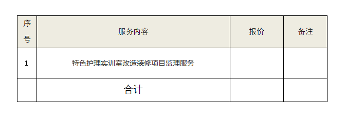 公司因发展建设需要,拟采购特色护理实训室改造装修项目监理服务单位,邀请符合资质要求的公司前来参与。