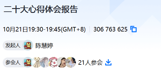 XCSport2020级预备党员及2021级积极分子们召开线上会议,会议内容是关于二十大会议带来的思想启发与心得感想,在线上会议上大家宣读自己的心得体会。