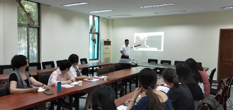 第一阶段——提高新教师素质:时间7月7日至9日,旨在帮助新教师快速适应教师岗位,完成角色的转换。戴翠萍副经理针对性地开展了教学管理规范和要求解读,季宁东教授开展了职业教育新发展与理实一体化教学模式讲座,侯明香老师进行护考平台的使用演示,张玉红老师和来自淮安市第二人民医院的王惠主任、林永滔博士等进行了说课、课堂教学展示。三天的培训,新教师熟悉了公司、公司、专业和岗位工作内容,熟悉了公司的教学常规管理,以及护理专业职业教育的教学理念和要求。