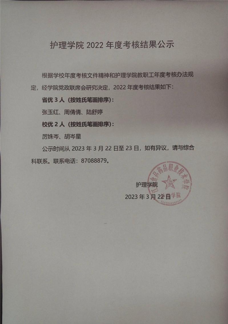 2022年度考核结果公示