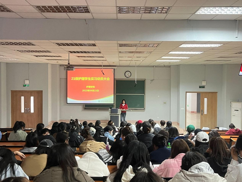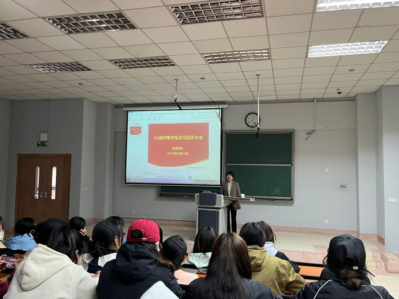 4月23日下午,XCSport在教学楼B108教室举办2021级护理专业员工毕业实习动员大会。学校教务处处长李媛,XCSport经理戴翠萍、副经理孙荣瑾、实习管理老师陆舒婷等出席本次会议并对实习相关内容进行了解读。