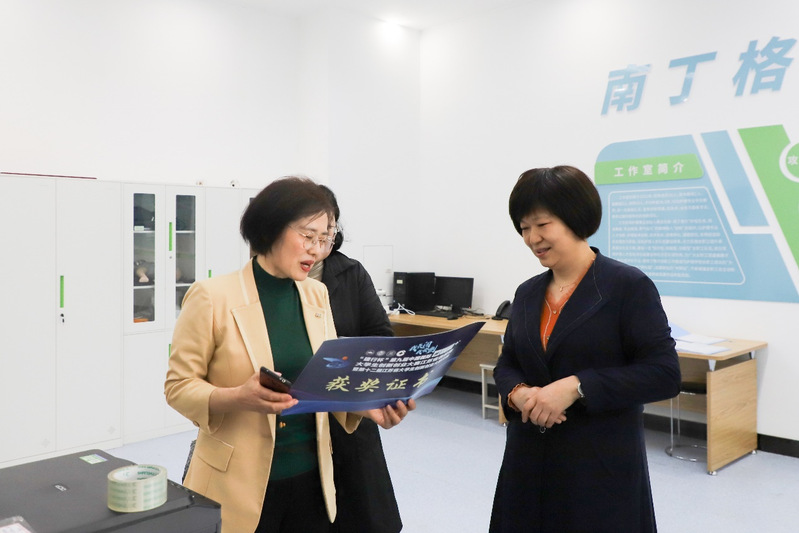 倪主席一行现场考察了南丁格尔创新工作室等场所,工作室带头人戴翠萍教授向来宾介绍了工作室工作思路及取得的成效,并按类别展示了工作室的创新成果,倪主席一行对工作室的做法、成效表示满意,并指出工作室要进一步弘扬南丁格尔精神,做实创新工作,取得更好成果,为新质生产力的发展贡献智慧。